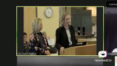 Deni Loubert talks to MLA Jennifer Whiteside at her local constituency